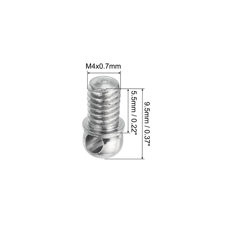 - Color: Silver Tone; Material: Carbon Steel; Thread Size: M4x0.7; Total Length: 9.5mm / 0.37 inch; Thread Part Length: 5.5mm / 0.22 inch; Packing List: 30 x Eye Screws