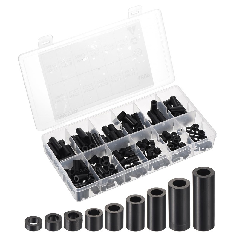 - Specification: Material: ABS; Color: Black; Package List (IDxODxH): M5*9mm*3mm(20Pcs)/M5*9mm*5mm(20Pcs)/M5*9mm*6mm(20Pcs)/M5*9mm*8mm(20Pcs)/M5*9mm*10mm(20Pcs)/M5*9mm*15mm(20Pcs)/M5*9mm*18mm(20Pcs)/M5*9mm*20mm(20Pcs)/M5*9mm*25mm(20Pcs)