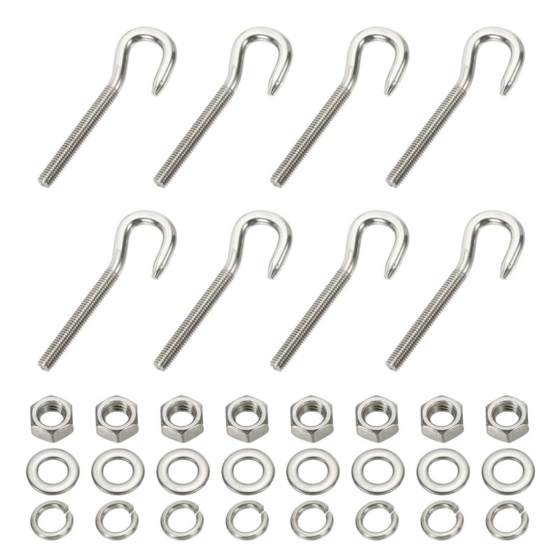 Packing List: 8 Pcs x Stainless Steel Hook Bolt, 8 Pcs x Flat Washer, 8 Pcs x Spring Washer, 8 Pcs x Nut