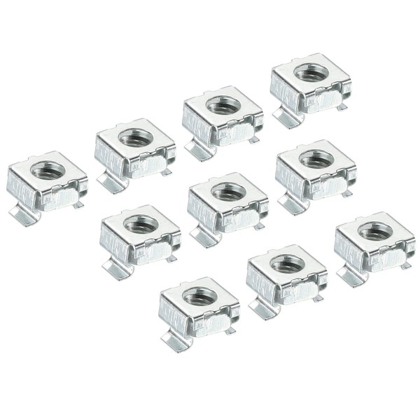 - M6 cage nut with through holes and screws to accommodate nuts in the housing body. Widely used in electric box, electric cabinet, railway and other industries