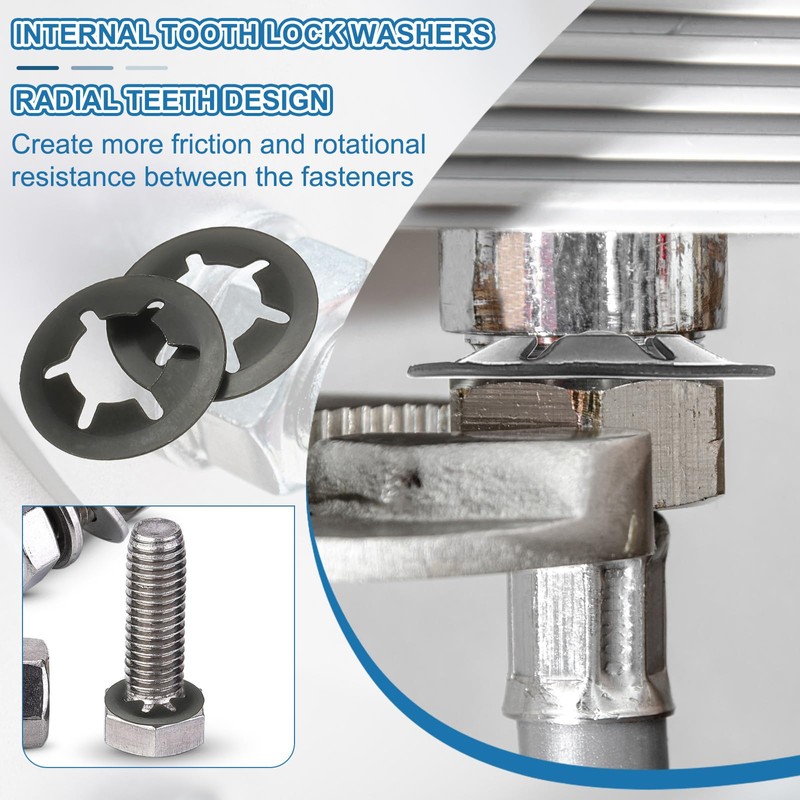 - Feature: Star internal tooth lock washers feature radial teeth that create more friction and rotational resistance between the fasteners and substrate for superior locking capability