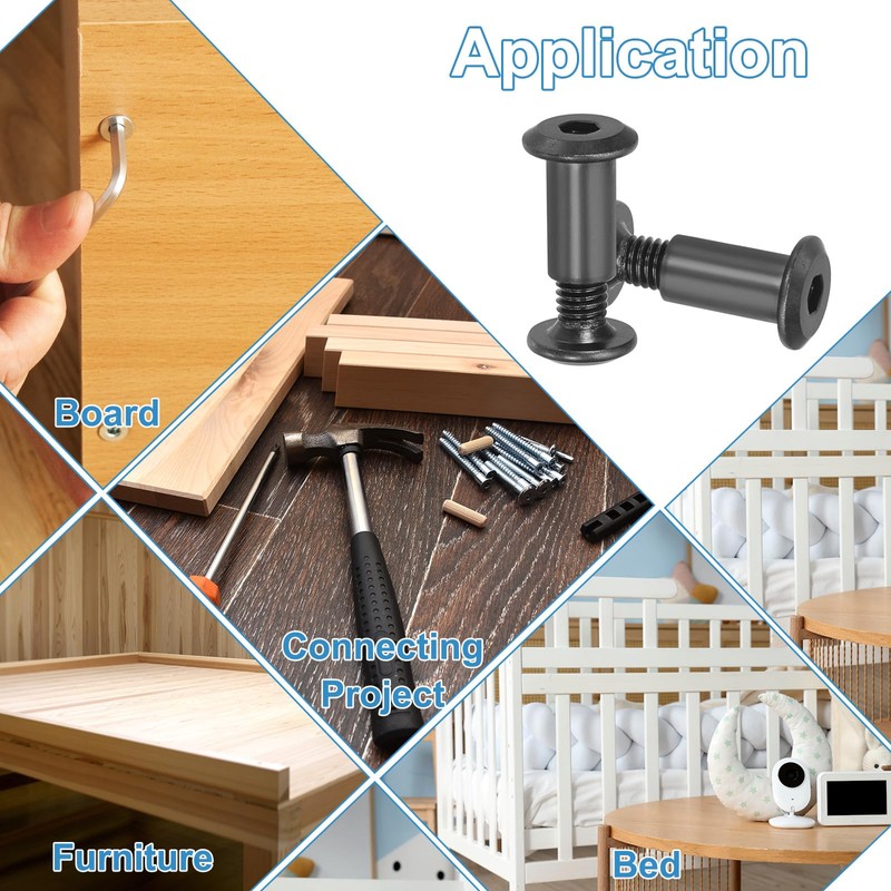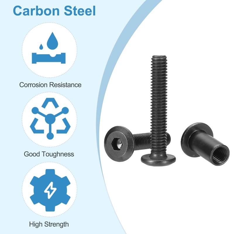 - PREMIUM MATERIAL: The socket head cap connecting bolt and nut is made of carbon steel, wear resistance, corrosion resistance, high hardness and good toughness, and good decoration.