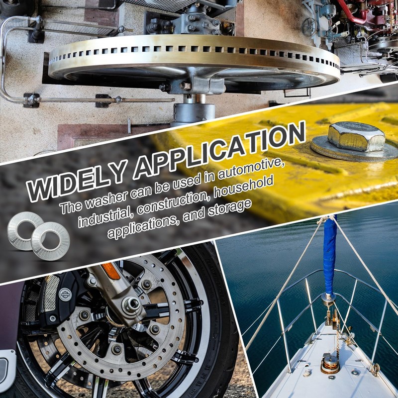 - Advantage: The spring washer can protect fastened components from loosening. The smooth burr-free surface finish allows for easy installation and prevents damage to the components used