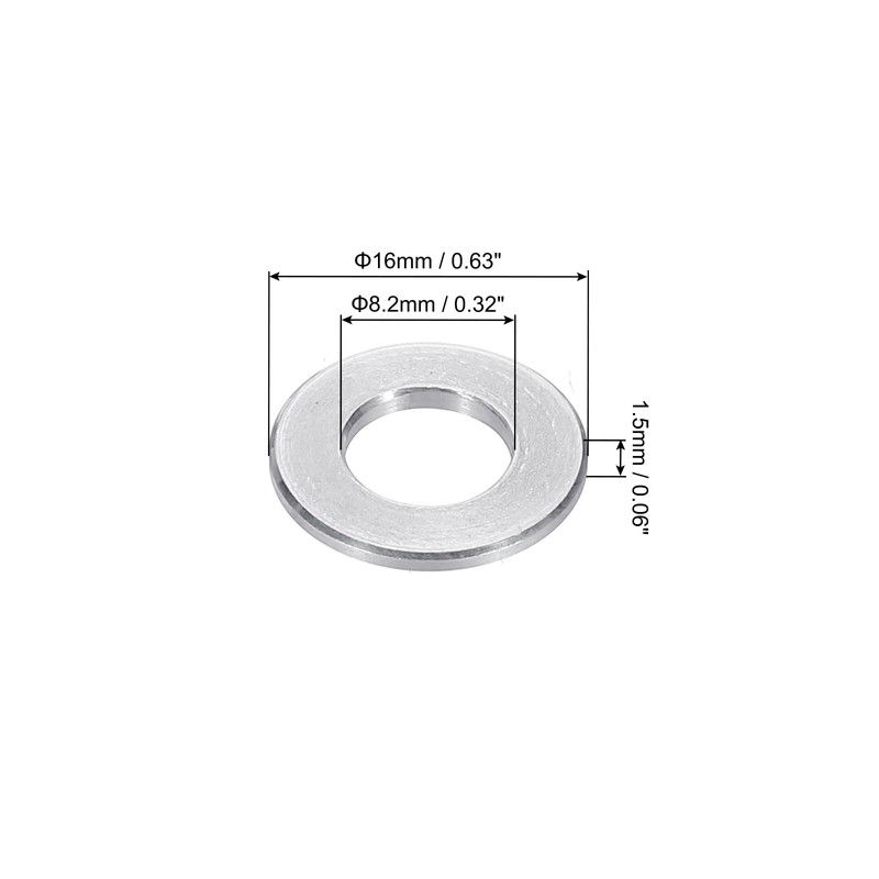 - Material: Aluminum; Size:8.2mm ID x 16mm OD x 1.5mm L / 0.32 x 0.63 x 0.06 inch (ID*OD*L)