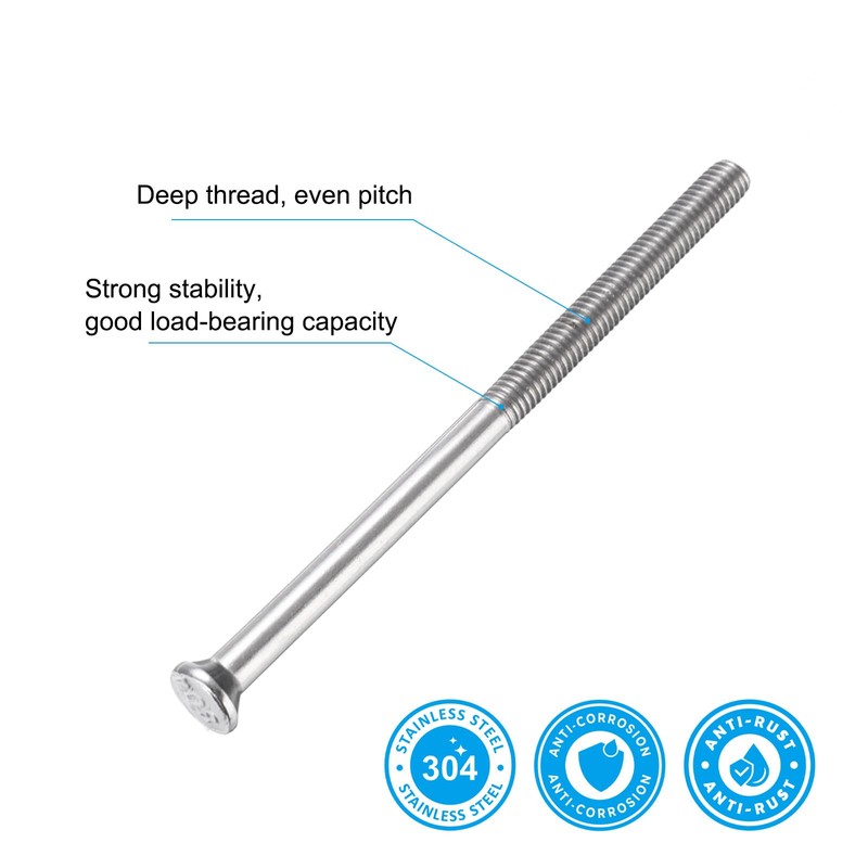 - Specification: Color: Silver; Material: 304 Stainless Steel; Thread Size: M8 x 100mm; Total Size: 100 x 16mm / 3.94 x 0.63inches(L x W); Sleeve Size: 75mm / 2.95inches; Drill Punch Diameter: 12mm / 0.47inches; Packing List: 12Pcs x Expansion Bolts