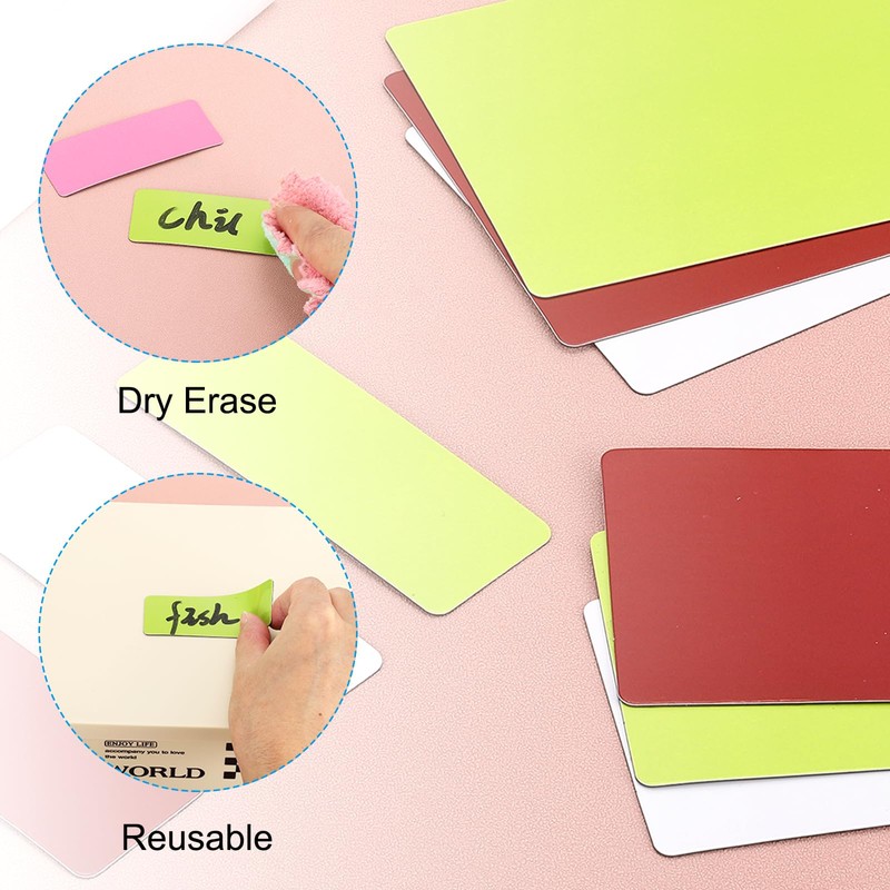 - Advantage: Magnetic dry erase labels can be dry erase to reuse or save and can be kept for a long time. You can always erase the product's surface to change the content, which can effectively help you update the information frequently.