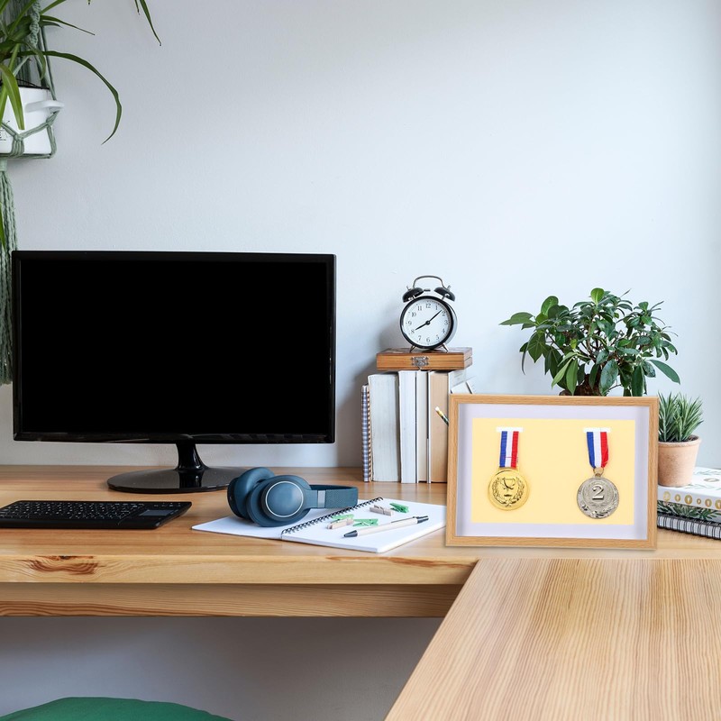 - Advantage: The Medal Display Shadow Box is made of resin material, making it more beautiful and durable. High-definition glass helps to block out dust and make the award frame more transparent. It also adopts a hollow design to protect the medal better.