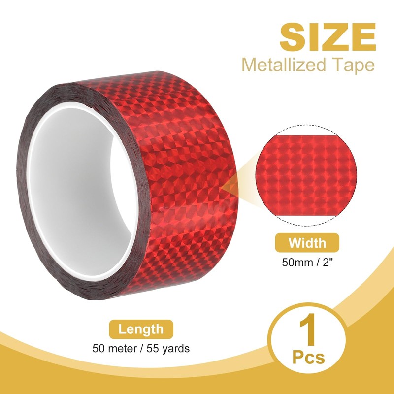 PATIKIL Metalized Polyester Film Tape 2 Inch x 55 Yards, Metallic Decor Tape Laser Red Adhesive Mirror Tape for Detailing Accent Wall Graphic Arts Boat Trim Walls