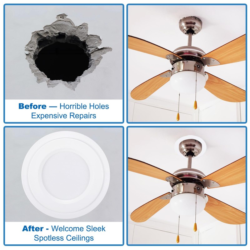 Our Goof trim ring is made of high quality metal, which is high hard, sturdy and durable. A clean matte look can easily provide you with a clean ceiling look.