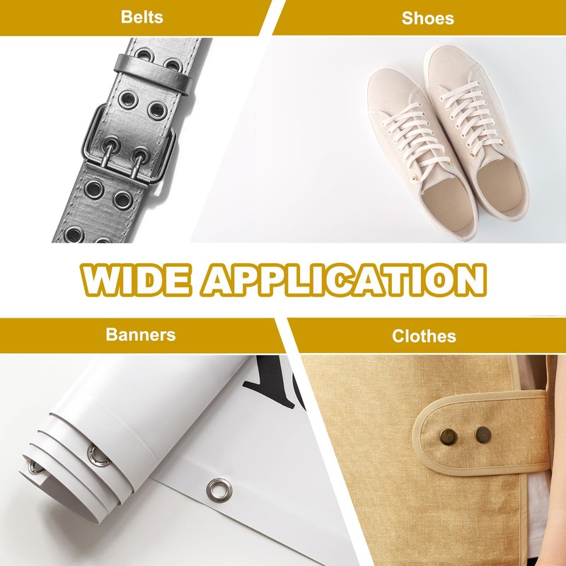 - 【Anwendung】 Die Metallösen eignen sich für verschiedene DIY-Aktivitäten, wie Papierhandwerk, Planen, Dekorationen, Stoff- und Lederkleidung und so weiter. Sie können es für Schuhe, Gürtel, Taschen, Hüte, Leinwand, Scrapbooking, Zelte und mehr verwenden.
