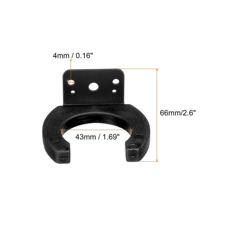 - The microphone Holders, we provide here, are in the size of: Material: Metal; Color: Black;Hole Dia:4mm / 0.16 inch; Microphone clip inner Dia:43mm / 1.69 inch; Size: 66*67*29mm / 2.6 x 2.64 x 1.14 inch (L*W*H)
