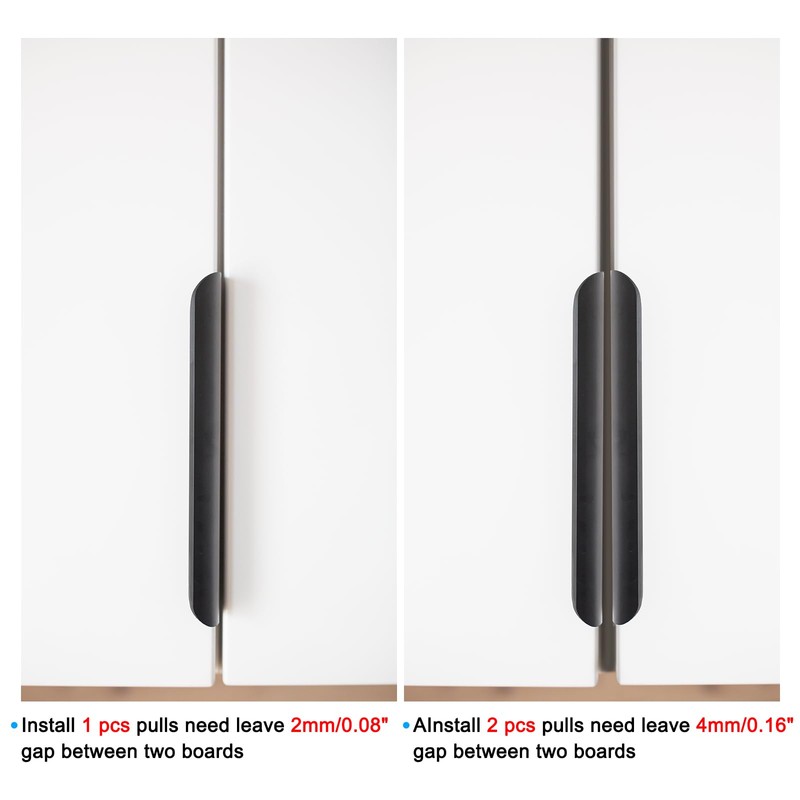 - NOTE: Please leave at least a 2mm gap between two boards for easy pulling, when you Install a piece handle. And please leave at least a 3.5mm gap between the two boards for easy pulling, when you Install 2 pcs handles. Installing two double doors with a gap greater than 4mm is recommended.