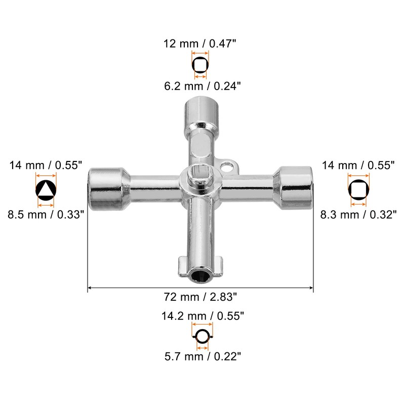 - Advantage: 1.The utility key is made of zinc alloy, durable and long time use. 2. The cross design consists of two squares, one triangle, and one key, can be used with different shapes of switch screws. 3. It can be hung on the key chain, easy to carry, small holes in the middle and sides