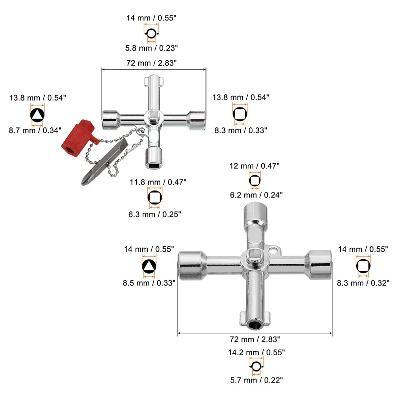 - Application: This multifunctional key can open toolbox doors, electric doors, trains, and cabinets, especially doors in public places. It can also be used as a practical wrench to turn valve screws, suitable for various valves such as electric, water, gas, train, cabinet, elevator, etc.