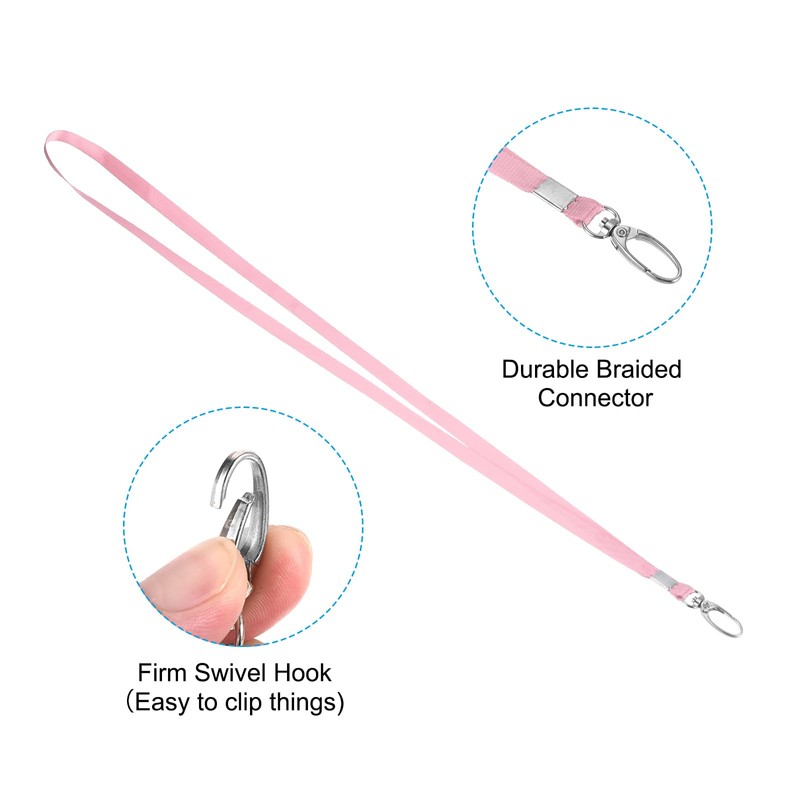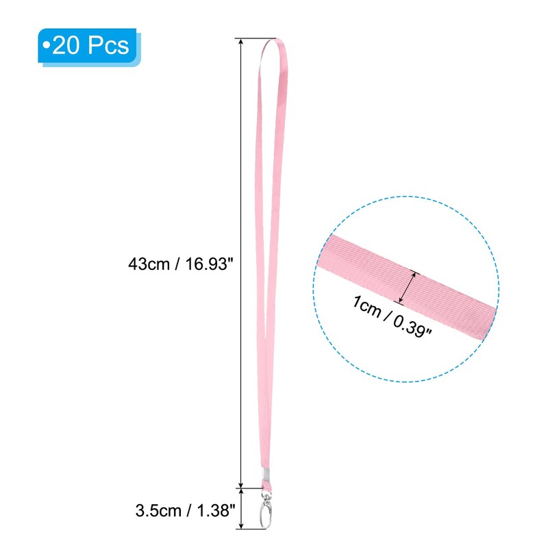 - Color: Pink; Material: Polyester, Metal; Clip Overall Width: 3.5cm / 1.38 inch; Lanyard Dimensions: 43 x 1 cm / 16.93 x 0.39 inch (L*W); Package Content: 20 x Flat Lanyards (Card not Included)