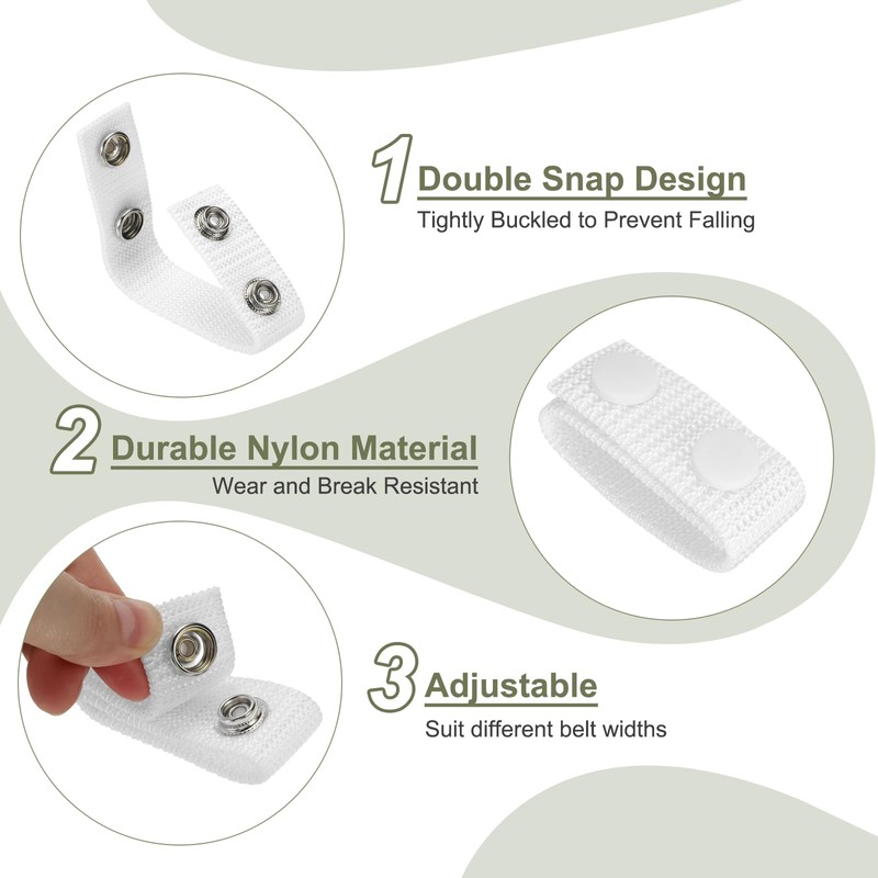 - Advantage: Adjustable: The width of this belt keeper can be adjusted by fixing different snaps to suit different belt widths; Durable: Made of nylon with double metal snaps, this belt keeper is wear-resistant, not easy to fade or break. Also lightweight, compact, easy to store and carry outside.