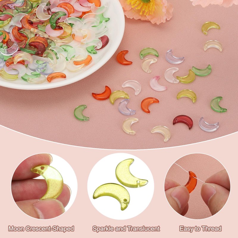 These beads have a beautiful appearance. They are durable, well coated and will not fade. These glass beads sparkle and are translucent, making them even more eye-catching. They are lightweight, have a smooth surface, and their delicate crescent shaped appearance gives you a beautiful and shiny feeling.