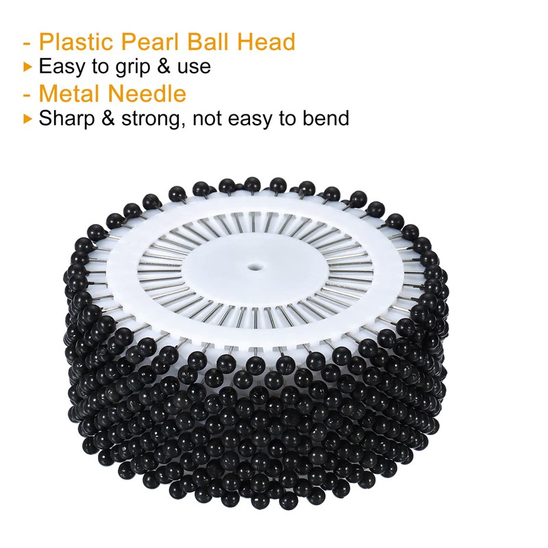 PATIKIL Pack of 520 Pins Beads Sewing Straight Pins Round Head Patchwork Pins for DIY Craft Project Black