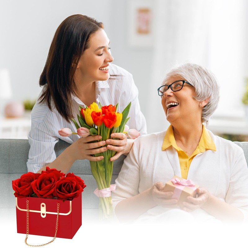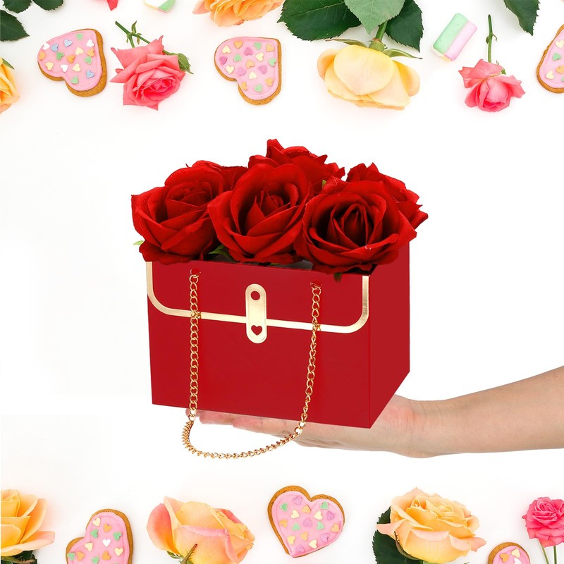 These flower boxes are designed in the shape of a handbag, which is lightweight and looks elegant; The double chain handle is design lets you carry it easier; The three-dimensional shape can make flowers stretch easily and flexibly, showing the beauty of flowers.