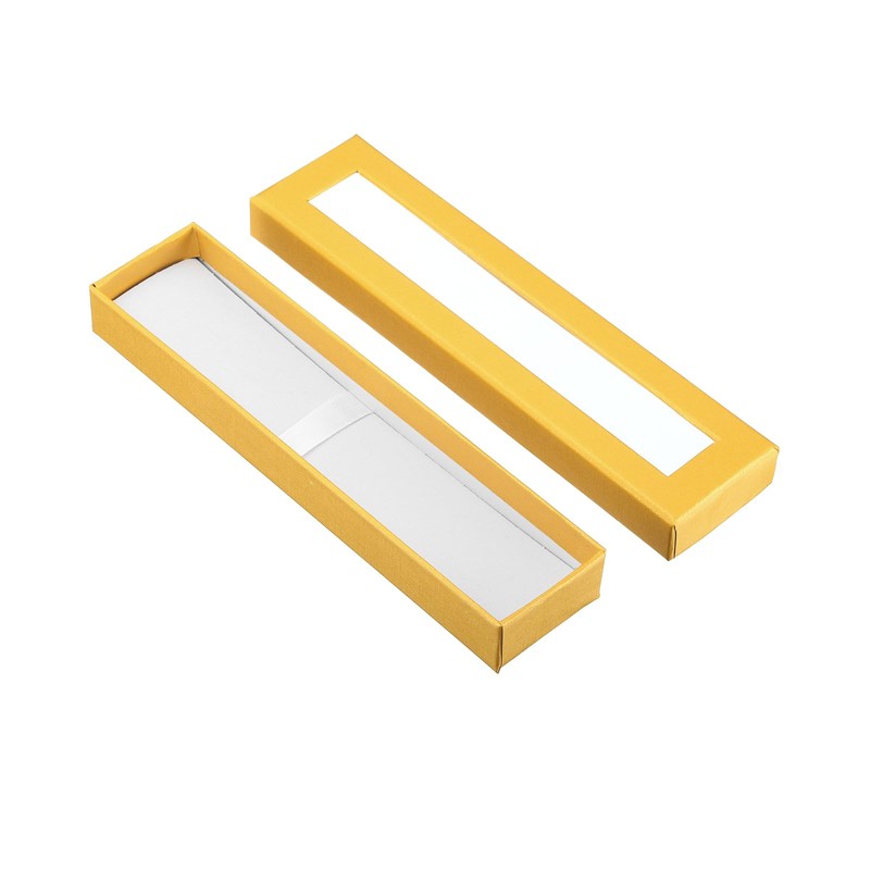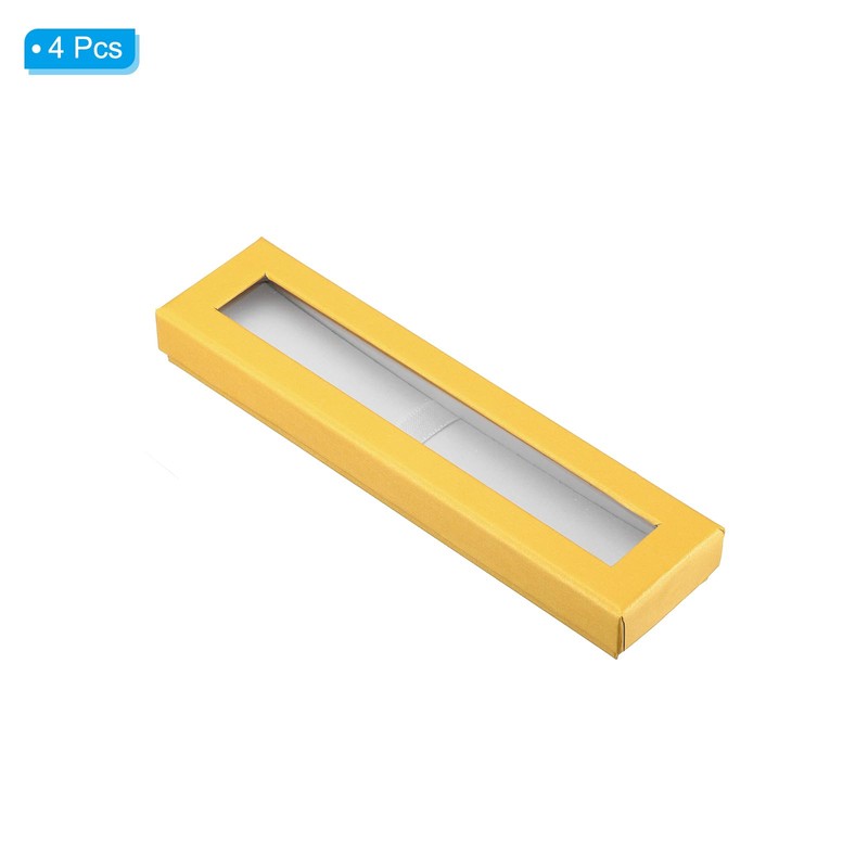 PATIKIL Pen Gift Box, 4 Pack Empty Pen Case Cardboard Case with Clear Window Pen Presentation Display Box for Pencil Ballpoint Jewelry Business Office, Yellow