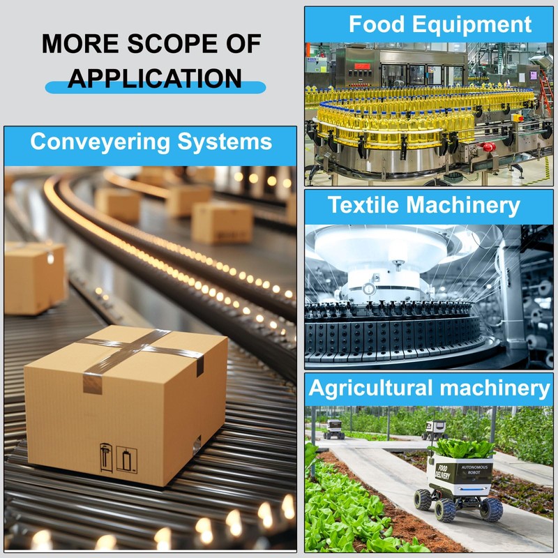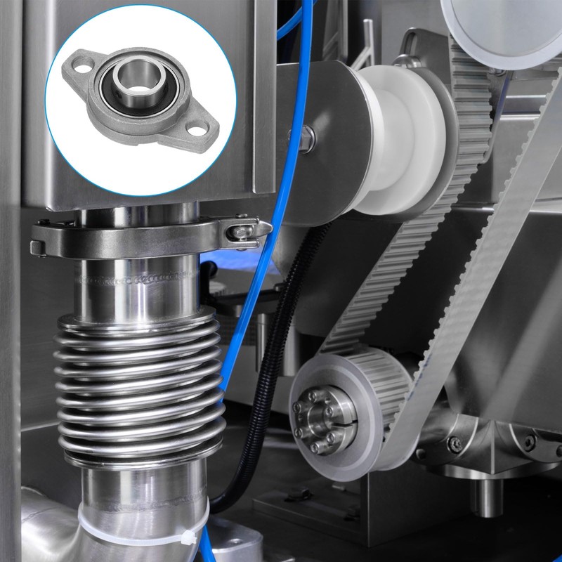- Application: Pillow block bearings have a broad application spectrum, in various industries such as machinery, power generation, mining, metallurgy, textile, agriculture, and notably, food processing machinery. Additionally, they are adaptable for use in conveying systems, machinery involved in film processing, equipment, and printing machines.