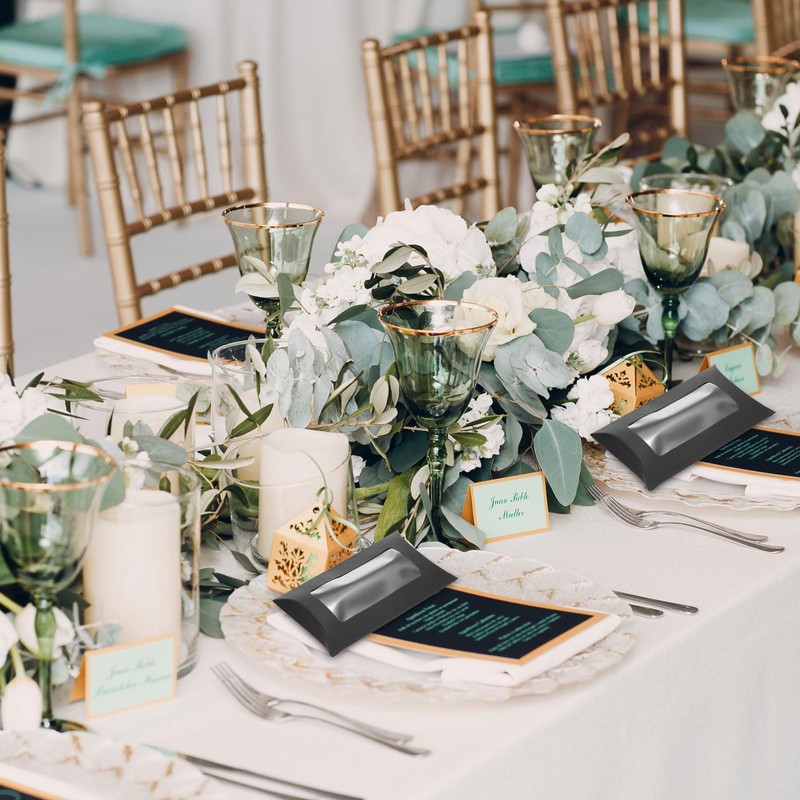 PATIKIL Pillow Boxes 50 Pieces Wedding Gift Boxes Paper Box 5.7 x 2.9 Inches for Gift Wrapping Paper Wedding Parties Black