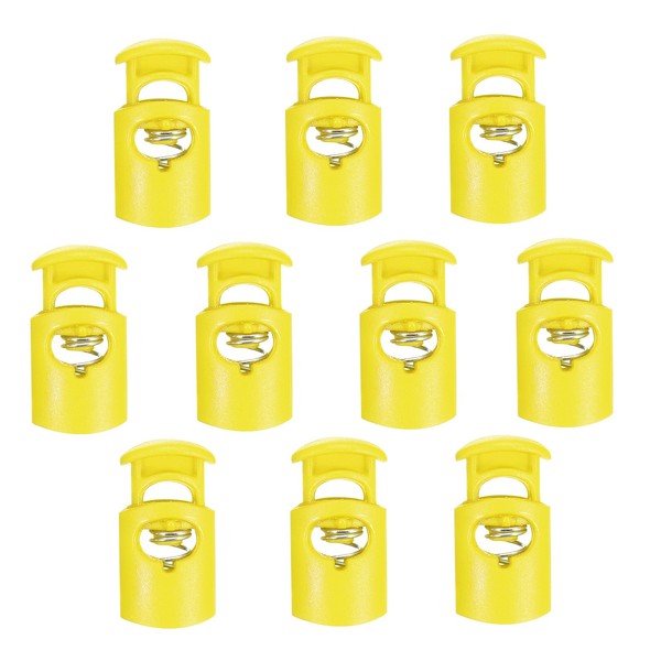 PATIKIL Plastic Cord Lock, 10 Pack Single Hole Spring Toggle Stopper Adjustable Cord Stops Fastener End for Paracord, Camping, Hiking, Drawstring, Shoelace Replacement, Yellow