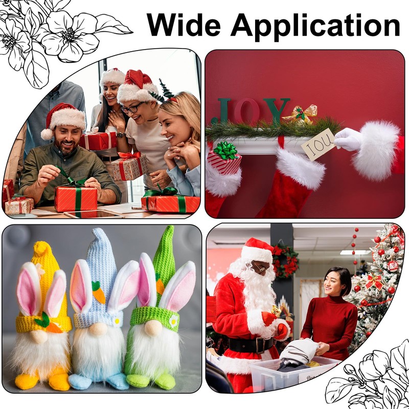 - The plush faux fur fabric can be used as decorative and handmade materials and is very useful in making various clothing decorations, such as carpets, pillows, cushions, fur balls, dress raw edge decorations, etc. The plush faux fur fabric square can also be used for different occasions and festivals, suitable for making Gnomes, Santa Claus's beard, Santa hats, plush dolls, etc Christmas, New Year, birthday parties, performances, etc. It has rich functions and uses.