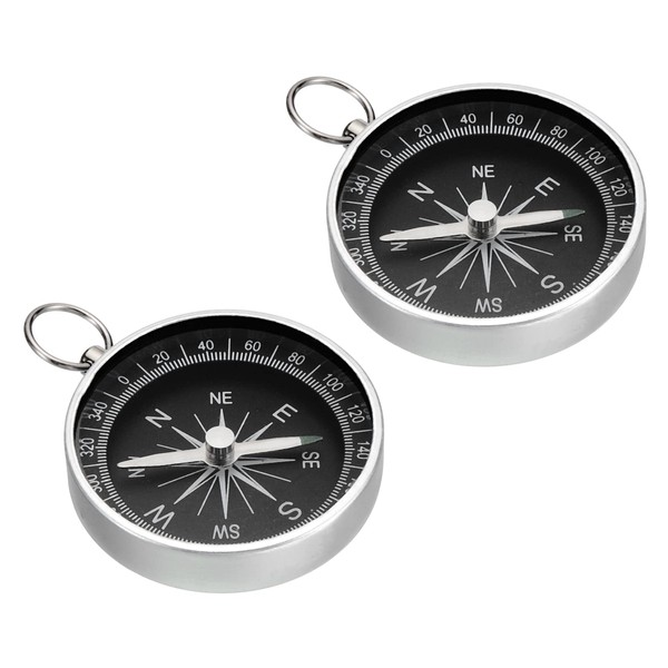 PATIKIL Pocket Compass 2 Pcs Survival Sport Navigation Compass with Key Ring for Outdoor Camping Hiking White