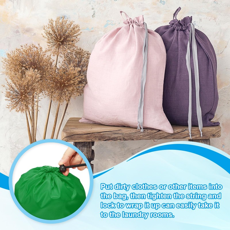 - [Drawstring Closure] The travel bag has a locking drawstring closure to prevent spilling of your clothes. You can tie tightly to keep clothes safer and more secure in the bag while carrying laundry. It can also be used as the lining bag of the laundry hamper or basket to keep it clean and prevent the smell of dirty clothes.