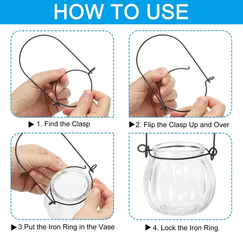 - Instruction: It is easy to use, you can connect the wire ring to the vases and hang it upright where you want to hang it and put water and plants in it