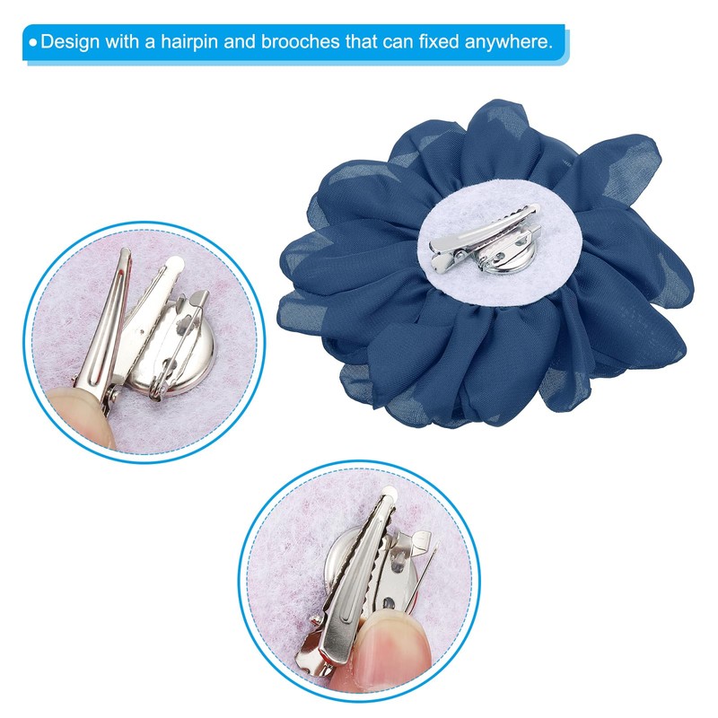 - Color: Navy Blue; Material: Satin; Diameter: 10cm / 3.9 inch; Packing List: 1 x Rose Flower Hair Clips