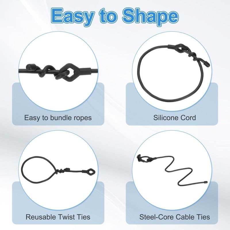 - Application: The Rubber Twist Ties are used for indoor home storage room power cord, household equipment fixing and hanging, gardening, camping, fixing plant stems, hoses, cables, luggage fixing, and more