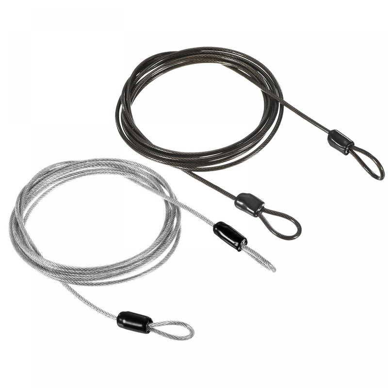 PATIKIL Security Steel Cable 2.5mm x 2m/6.56ft Coated Luggage Lock Wire Rope with Double Loop Transparent, Black 2 Pack