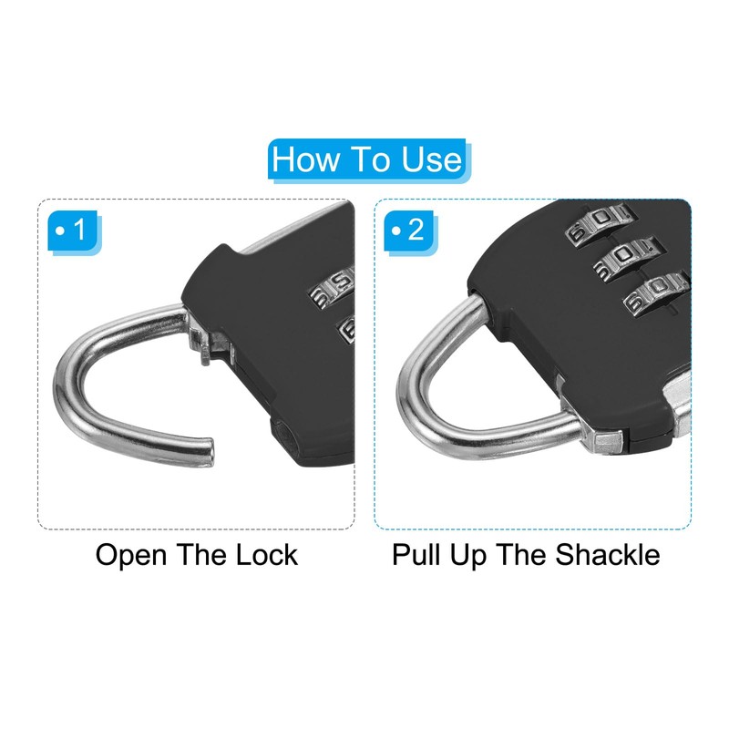 • Application: The 3 digit combination padlock with steel cable is a good design, widely used to locker bicycles, lockers, bags, luggage, fences, baskets, helmets, suitcases, gym cabinets, etc. to prevent items from being lost.