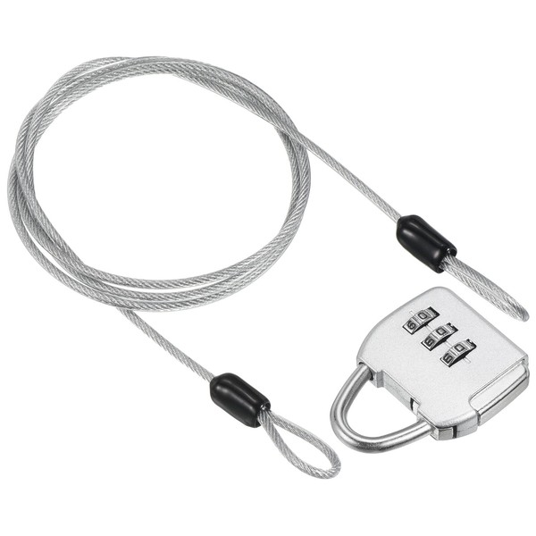 PATIKIL Security Steel Cable with 3 Digit Combination Lock, Travel Padlock 3Ft Coated Safety Wire Rope Double Loop for Luggage Suitcase Silver