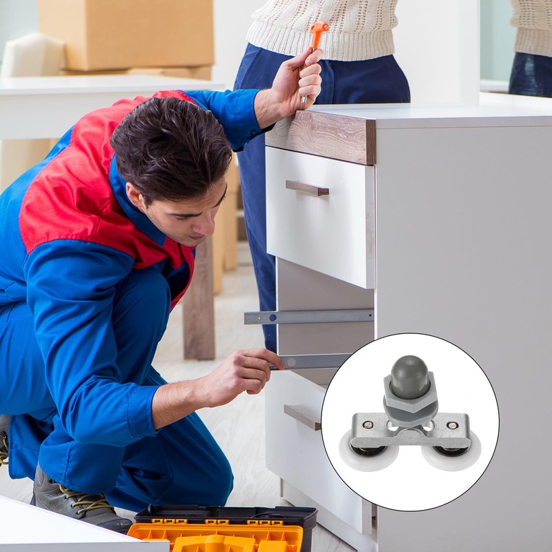 PATIKIL Shower Door Rollers, 25mm/1", 4 Pack, White, Nylon, Bearing Steel, PP, Grey, Under Mount, Side Mount, Replacement Part