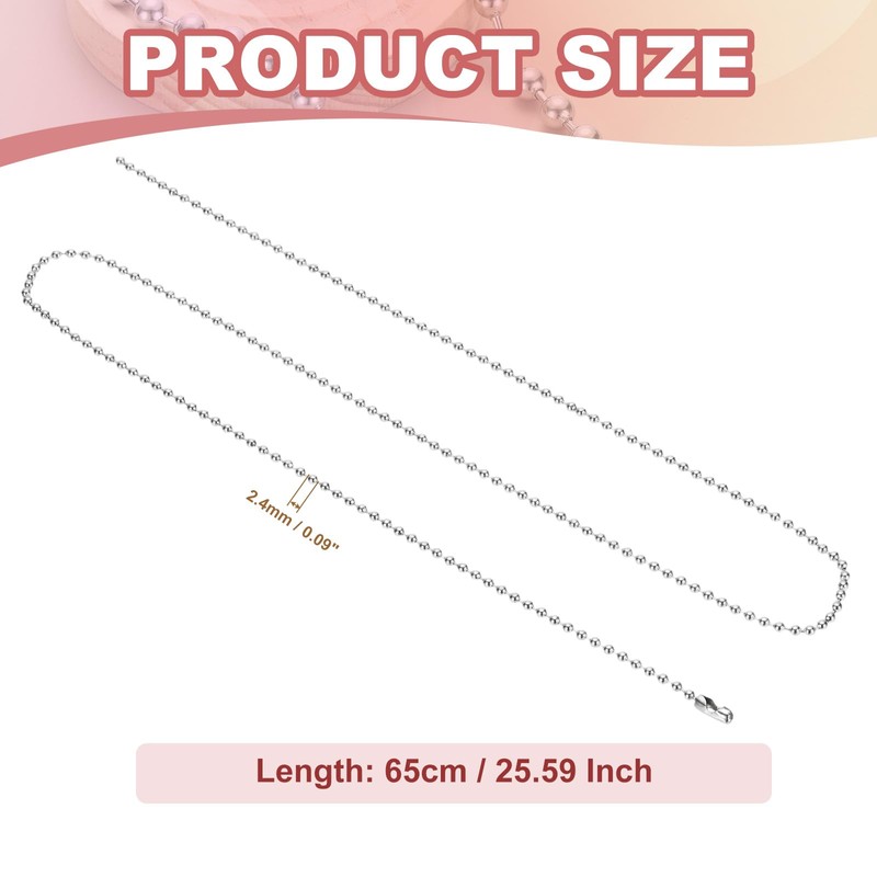 - Color: Silver-tone, Material: Titanium Steel, Width: 2.4mm / 0.09 Inch, Length: 65cm / 25.59 Inch, Packing List: 1 Pcs Beaded Chain Necklace
