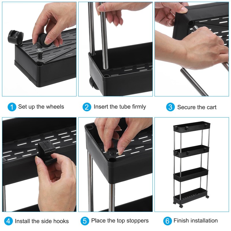 - Wide Application: The Storage Cart can be placed in the bathroom, living room, bedroom, office, kitchen, and more, you can store shampoo, conditioner, make up products, detergent, cleaning products, bathroom accessories, condiment, kitchen accessories, household items, etc.
