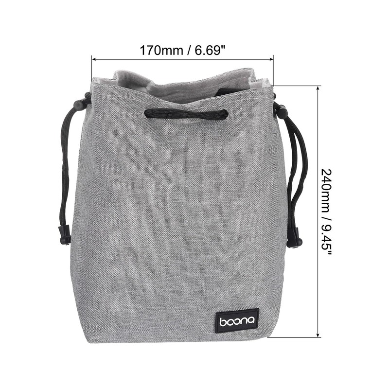 - Specification: Color: Grey Material: Oxford Cloth Size: 170 x 120 x 240 mm/ 6.69 x 4.72 x 9.45 (L*W*H) Packing List: 1 x Soft Drawstring Lens Case