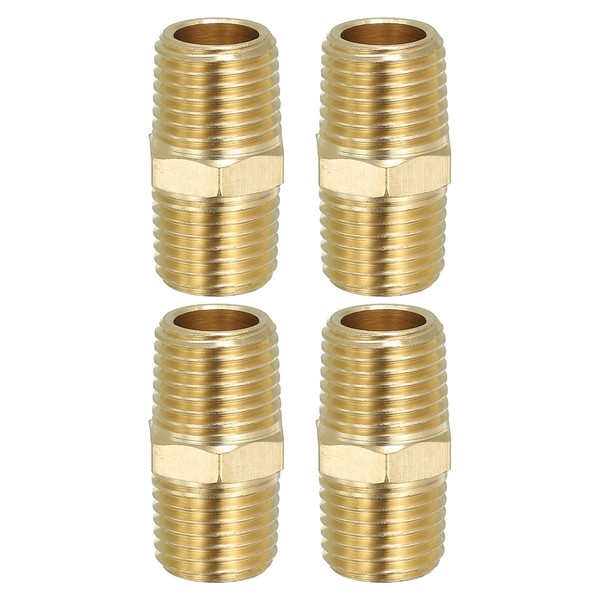PATIKIL Solid Brass Hex Nipple Pipe Fitting Thread Adapter, 5 Pack 1/4" NPT x 1/4" NPT Male Water Line Connectors Couplings