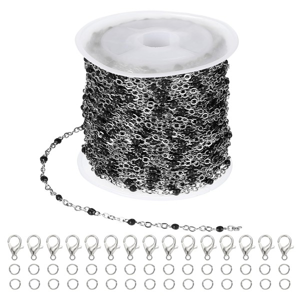 - Specification: Chain Length:10m/33Ft; Chain Width:1.5mm/0.06 inch; Color: Silver/Black; Material: Stainless Steel; Packing List: 1 Roll Jewelry Chain; 50 Pcs Lobster Clasps; 100 Pcs Jump Rings
