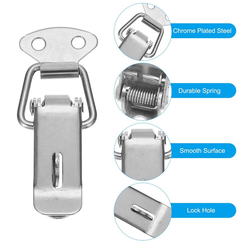 • Application: Spring loaded latch is mainly used to quickly and safely lock the trunk, chest, toolbox, case, cabinet, locker, etc., providing a convenient opening and closing mechanism.