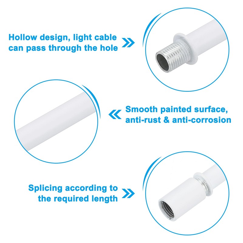 • Threaded design at both ends facilitates connection. Easy to use, no need for tools. The lamp rod is hollow enough to slip the lamp wire through, which is very convenient.