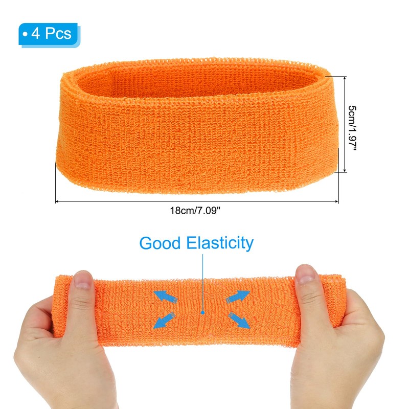 - Color: Orange; Material: Polyester; Headband Size: 18 x 5cm / 7.09 x 1.97 inch (L*W); Packing List: 4 x Headband