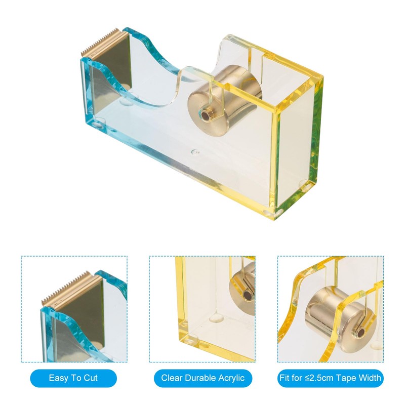 PATIKIL Tape Dispenser, Tape Dispenser Desk Cute Tape Desk Dispenser Holder Weighted Transparent Acrylic Weighted Gradient Heavy for Tape Office Desktop, Yellow Blue