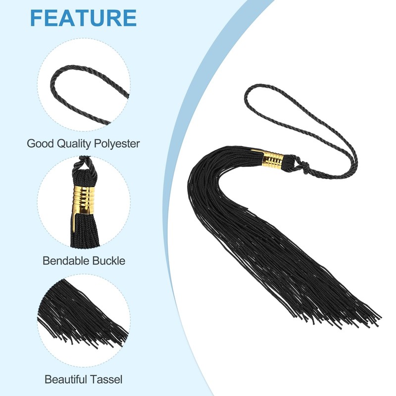 - Advantage: 1. Long using time. Our tassel graduation is made of good quality polyester which is durable, soft, solid, and not easy to break. 2. Widely used and good gift. Graduation cap tassel for graduation cap can be used for many locations, such as graduation ceremonies, parties, and some important occasions. Besides, Tassel graduation can also be given to your friends and family as a souvenir gift. 3. Bendable buckle. The Buckle of the tassel graduation is bendable and can hold some lovely i