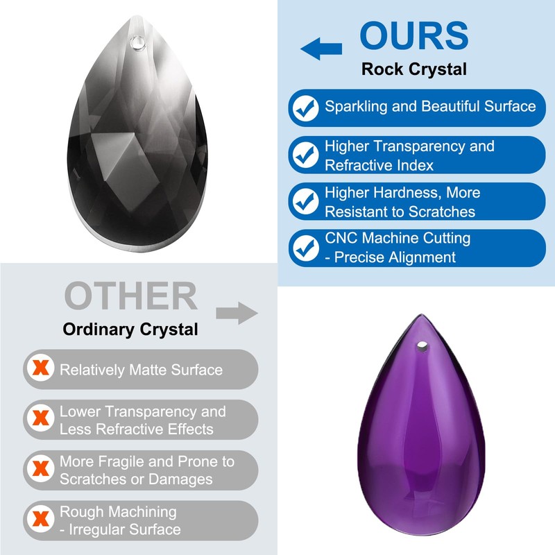 - Color: Light Black; Material: Rock Crystal; Teardrop Bead Size: 38 x 22 x 12mm / 1.5 x 0.87 x 0.47 inch (L*W*T); Octagonal Bead Size: 14mm / 0.55 inch; Total Length: 60mm / 2.36 inch; Packing List: 10 x Teardrop Crystal Chandelier