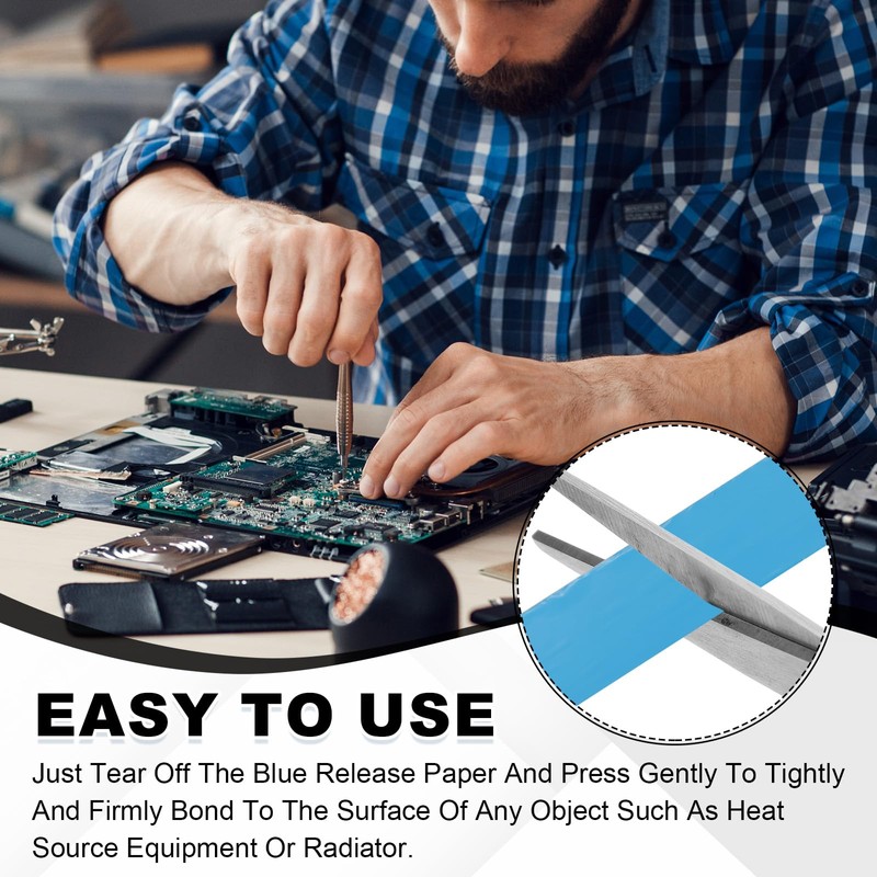 - Application: This thermal tape can firmly attach to diverse surfaces and electronic components, enabling efficient heat transfer and reliable performance. Suitable for most electronic devices such as heat sinks, LED, GPU modules, computer CPU, IC chips, MOS tubes, SSD drives, etc