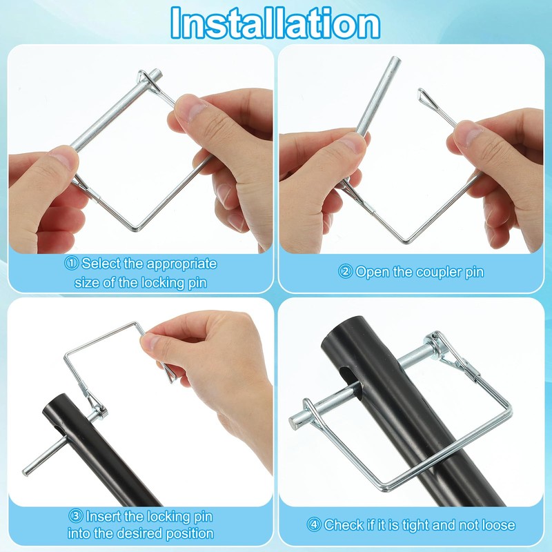 - Material Features: Wire lock pins are made of galvanized steel, resistant to corrosion and rust, durable under all weather conditions, capable of withstanding heavy loads and repeated use not easily deformed, and provide a strong and secure connection for your trailers